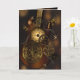 Um misterioso e sombrio cumprimento de parabéns Steampunk que inclui um relógio, guitarra, correntes, engrenagens, rodas, asas e muito mais. Se você quer um cartão com um toque de rebeldia, então este é para você.