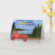 Parabéns no seu primeiro cartão novo com uma imagem do carro vermelho de 1920. O fundo é uma cena de lago e árvores. As palavras na dentro da placa podem ser alteradas. Obrigados para a Creative Fabrica para alguns dos elementos na design.