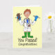 Trata-se de um cartão divertido para um macho que passou nos seus exames veterinários e é agora veterinário qualificado. É uma caricatura de um veto masculino sorridente vestido em seu casaco branco, vestindo luvas azuis e botas verdes de Wellington. Ele está segurando um rato marrom grande que parece muito preocupado em uma mão e um termômetro enorme na outra. Ele tem um pequeno rato marrom espiando do bolso. Ele tem um estetoscópio pendurado no pescoço. O fundo é amarelo pálido. A imagem é minha a partir de um desenho à mão livre, revestido manualmente e digitalizado e colorido digitalmente no Sketchbook Pro. Fui inspirado a fazer o cartão depois de ver um programa sobre um veterinário recém-qualificado.
