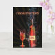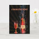 Espalhar vinho e bolhas de uma garrafa e vidro dá a este cartão de parabéns uma sensação de entusiasmo. A menção "No seu divórcio" é impressa no rótulo da garrafa de vinho. Uma maneira excelente de dizer parabéns a um amigo para se divorciar.