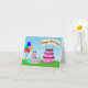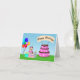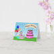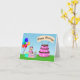 Este Yorkie fofo que está vestindo uma festa cor-de-rosa cercada por balões coloridos, presentes envoltos, e um bolo de chocolate cor-de-rosa decadente de três camadas decorado com ossos de cão e estampas de pata, este cartão é perfeito para amantes de cães.