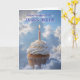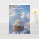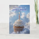 Lembrando de um pai atrasado no seu aniversário. Um cupcake nas nuvens com uma vela de aniversário. Palavras de dentro de suporte. Uma forma excelente de lembrar uma alma amada.