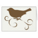 Esta silhueta na cor castanho chocolate é de um pardal empoleirado em cima da ramo-como a fita. Uma descrição doce e romântica de um pássaro e de uma natureza.