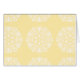 Esta mandala branca senta-se sobre um fundo amarelo claro. As cores são felizes e pacíficas. Parte da coleção Erghen Mandala.