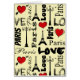 Design de texto de Paris para Dia de os namorados com formas vermelhas de coração, Torre Eiffel e decoração de lâmpadas de rua em fundo amarelo
