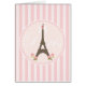 Design feminino bonito e super do bebê que caracteriza uma torre Eiffel marrom com uma fita cor-de-rosa na parte superior. Flores cor-de-rosa doces pela base das torres, assim como listras cor-de-rosa e outros ornamento delicados.