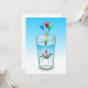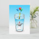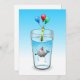 Convite de aniversário de piscina com uma bela ilustração de uma baleia. A baleia está vestindo um chapéu de festas listradas vermelho e branco e começou a festa de aniversário que acontece em um copo d'água cheio.