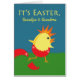 Páscoa da frente personalizada para avós / vovô / vovó, pegue fogo! Engraçado ilustração de um pintinho de rocha punk com um mohawk correndo em parte de sua casca de ovo. Pedaços de ovelha estão espalhados na grama. Adicione ou altere o texto em Páscoa, para um cartão de saudação personalizado personalizado. Altere a relação, se desejar. Elemento pintinho cortesia de Openclipart. Arte, imagem e verso © Shoaff Ballanger Studios.
