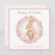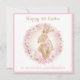 A garota mais bonita do coelho da Páscoa com ovos de Páscoa cor-de-rosa na flor da cereja e na coroa de magnólia, carta para a menina, neta, primeira Páscoa. Personalize facilmente este cartão de Páscoa com o seu próprio texto. Kate Eden Art.