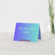 Cartão de despedida colorido brilhante com fundo azul-aqua. texto na frente do Dentro "Moving On To New Adventures" " Sentiremos muito sua falta