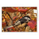 Cartão Pássaro Chickadee com Folhas de outono Vermelhas R
