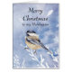 Desejando felicidade e abençoando Hairdresser nesta Festa de Natal com um Pássaro Frango de Aquarela bonitinho na neve de inverno. para aqueles que amam a natureza e a vida selvagem