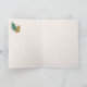 Um belo cartão para decorar o manto de alguém, tradicional, mas moderno, um assado de aquarela perfurado sobre um galho à medida que as folhas ouros de Holly caem, o i8nside e os fundos externos ambos cobertos com uma bela imagem de impressão de papelaria para uma glória extra.