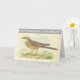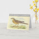 Essa design apresenta uma representação de um pássaro com penas coloridas em vários tons de marrom, em pé no chão. Ele também apresenta mensagens personalizáveis na frente e no dentro.