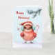 Cartão Pássaro Fofo de inverno em Santa Hat com doce