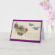 Esta impressão de colheita tem dois pássaros bonito e azuis voando sobre uma cena idílica emoldurada com fitas cor-de-rosa e flores violetas. Uma mensagem adorável para a felicidade completa a frente do cartão. O dentro de sentimento pode ser alterado ou excluído conforme desejar.