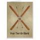 Escapas cruzadas de madeira e bastões de esqui num papel antigo, ou pergaminho, imagem de fundo. Adicione seu próprio texto.