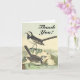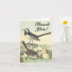 A frente deste obrigado de aparência vintage que você saúda o cartão design apresenta a mensagem apreciativa "Obrigado!" em um script como texto, junto com uma representação de pássaros. O dentro apresenta uma mensagem de gratidão editável. Um cartão como este poderia ser usado para expressar gratidão por algo especial que alguém fez.