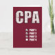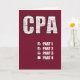 A good studen has passed 3 parts of the CPA test. Congratulate them after passing these important parts. This elegant design in dark red, black and white with the first three parts checked off is perfect for a man or a woman. There are more wonderful cards in this CPA congratulations series. You will find one for passing each part of the test. It will be a lovely surprise to receive your Congratulations this way.