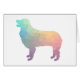 Vista lateral de Dog Breed de Shepherd australiano preenchida com um padrão geométrico colorido. Esta silhueta também pode representar: Aussie, Border Collie, Welsh Sheepdog, English Shepherd, McNab, Nova Zelândia, Atlas Shepherd, Mountain Shepherd, australiano Kelpie, berbere, herder boêmico, herdeiro croata, herdeiro americano, Drente, Drenthe, Gundog neerlandês Partridge Dog, Mudi, Old Fazenda Collie, Scottish Collie