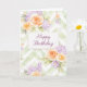 Cartão Pastel Peach Lavender Floral Sage Chevron Birthday
