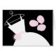 Cartão de saudação de família de noivas com um bonito design em tons de rosa, preto e branco, com um vestido de noiva estilizado em um cabide acompanhado de um buquê na frente, e rosa pálido no dentro. Um design personalizável para você personalizar com seu próprio texto, imagens e ideias.