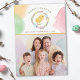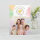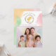 Celebrate Easter with this delightful personalizable card featuring Destei’s watercolor willow wreath decorated with pastel Easter eggs. A yellow chick sits in the center, while “Happy Easter” curves above in green lettering. Below, a personalizable area lets you add a name and year in brown font. A yellow line separates the top design from a space for your own photo, creating a perfect blend of artwork and personalization. Watercolor splashes in orange, green and pink decorate the edges on the front, while the back is fully covered in playful splashes for a vibrant, festive touch.