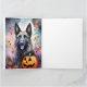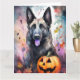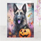 Cartão Pastor Belga de Halloween com Abóboras Assustadora