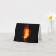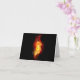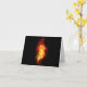 Pena de pavão brilhante feita de fogo e chamas sobre fundo negro.