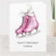 Cartão Patins de Gelo Rosa Bonito de Aniversário