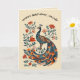 Este belo cartão apresenta uma ilustração de arte popular de um pavão com uma mensagem editável acima dele. No interior há uma mensagem editável. Você pode usar isso como um cartão de aniversário ou como um cartão para qualquer ocasião. Você pode alterar as mensagens ou excluí-las para criar um cartão em branco. Você também pode alterar as cores do fundo no interior e no verso. Crédito artístico: Lynda McDaniel-Smith.