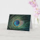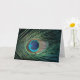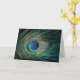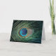 Esta foto da pena de pavão tem uma cor vibrante com um fundo escuro. O fundo escuro torna o olho da pena de pavão crocante e colorido. Os amantes de Peafowl pensarão que esta é uma bela carta para o dia especial do seu casamento!