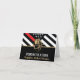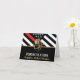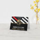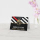 Este design apresenta uma bandeira de bombeiros com listras pretas e brancas, e uma fina faixa vermelha também. "Parabéns" e o crachá de bombeiro ficam acima do nome do bombeiro graduador. Esta design também funciona como excelente para se aposentarem bombeiros, tenentes ou chefes. Celebre em estilo!