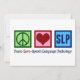 Cartão de Patologia da Língua do Amor pela Paz. Um belo presente de SLP em cores néon brilhantes e divertidas para um terapeuta da fala que obteve um diploma de patologista da língua falante e trabalha com comunicação.