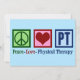 Este cartão fisioterapeuta bonito apresenta um sinal de paz, coração, e as letras PT para a fisioterapia. Excelente feriado ou cartões de Natal para um escritório ou empresa de terapia física.