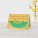 Cute twin baby peas sit nestled into an open pea pod on top of a striped yellow background. The girl with her pink bow, eyelashes, blushing cheeks and one tiny tooth and the boy with his nose poking out over the edge make them especially adorable. The cover text says: "We heard there is a couple new little sprouts in the garden" and the inside text reads: "Congratulations on your new twin babies!" Customizable! Don't like the background color inside the card, font style, or font color? Click on the "Customize It" button to change. Check out our other Pea Pod Pals, and New Baby products too. Want this design on something else? Just ask!