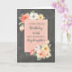 Um cartão de saudação bonito e ponderado para o aniversário da sua enteada com flores cor-de-rosa e brancas cor-de-pêssego, padrão de quadro-negro rústico e texto de estilo escrito à mão.