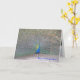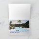 Peacock - Farewell: Um belo, orgulhoso, pavão azul com uma brilhante tela de cheio na frente desta despedida / adeus / desculpe por ver você ir embora. Dentro é uma imagem exótica de uma piscina de água azul-cristal com palmeiras