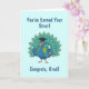 Celebrate a wonderful achievement with this graduation card featuring a proud peacock wearing a graduation cap and holding a certificate. With its vibrant colors, the peacock symbolizes confidence, success, and a bright future ahead. This cute design adds a touch of whimsy, making it perfect for congratulating graduates of all ages. Ideal for marking milestones from school to university, this card is a memorable way to say “congratulations” and honor their hard-earned accomplishment.
