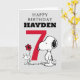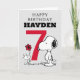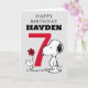 Celebre o aniversário do seu filho com este cartão super fofo de Snoopy e Woodstock. Personalize com o nome e a idade do seu filho.