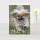 Excited Pekingese running with fur flying and the text," Miss You " a greeting card for someone you miss and someone who loves the Pekingese dog breed. Cute, Adorable card by Friskybizpet Designs.