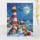 Cartão Pembroke Welsh Corgi Christmas Lighthouse Holiday