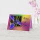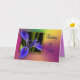 A íris azul bonita flui fora da janela da caixa de Borgonha, amarelo e verde fundo colorido em um pastel. O "pensamento de você" na parte dianteira e a escritura e a mensagem do interior pode ser personalizado com seu próprio texto.