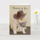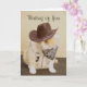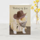 Cowpoke Bubba em um cartão Pensando em você/Ausente. Ele provavelmente está pensando sobre o quanto seu pagamento por esta filmagem vai gostar, mas ele tem esse tipo de olhar distante. Você pode personalizar o texto e, no dentro, pode alterar o tamanho da imagem e/ou movê-la ou apagá-la se precisar de mais espaço para escrever.