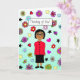 Bonito cartão com flores de arte folclórica e dama desenhadas à mão dizendo, 'pensando em você' e então usando dentro de humor no cartão, dizendo que espero que você esteja bem, não, espero que você esteja matando!" A senhora é desenhada com pele mais escura para representar diferentes etnias.