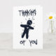 NewParkLane - Cartão de Boas Festas de Halloween preto e branco engraçado, com a citação divertida 'Pensando em Você' em uma tipografia assustadora de Halloween, com uma ilustração de silhueta de uma boneca voduça assustadora. O interior diz: Feliz Halloween.