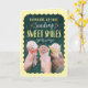 Deixe alguém saber que você está pensando nela com este cartão único com a mensagem, "Pensando em você! Enviando SORRISOS DOCES na sua direção!" O design aparece na imagem de mãos segurando cones de sorvete com acentos de flor, coração e rosto sorridente. O interior pode ser personalizado com uma mensagem de sua escolha, mas tem esta mensagem no interior, "É fácil de fazer, porque sempre que penso em você, meu coração usa um ENORME SORRISO! Espero que saiba o quanto você é lembrado e lembrado, mas acima de tudo? VOCÊ É AMADO!" O design à direita no interior inclui um acento de sorriso (que pode ser removido).