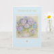 Um cartão de saudação gentil e elegante "Pensando em Você", apresentando obra de arte original de hortênsias de Nicky Bourke — Artista de Papel de Waikanae.