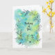 Flores desenhadas à mão com caneta e tinta sobre um fundo de respingos de aquarela azul, verde e azul-turquesa. Deixe alguém saber que você está pensando neles com este cartão alegre. O interior do cartão é em branco com muito espaço para seus próprios sentimentos. Envie um sorriso hoje.