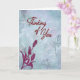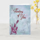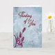 Ofereça um lembrete reconfortante de que você se importa com este elegante cartão Pensando em Você, apresentando flores inspiradas em magnólias graciosas em vermelho profundo contra um fundo azul suave texturizado. Perfeito para amigos, familiares, colegas de trabalho ou qualquer pessoa que esteja passando por um momento difícil. A mensagem carinhosa no interior expressa apoio e cura, ou você pode personalizá-la para torná-la sua.